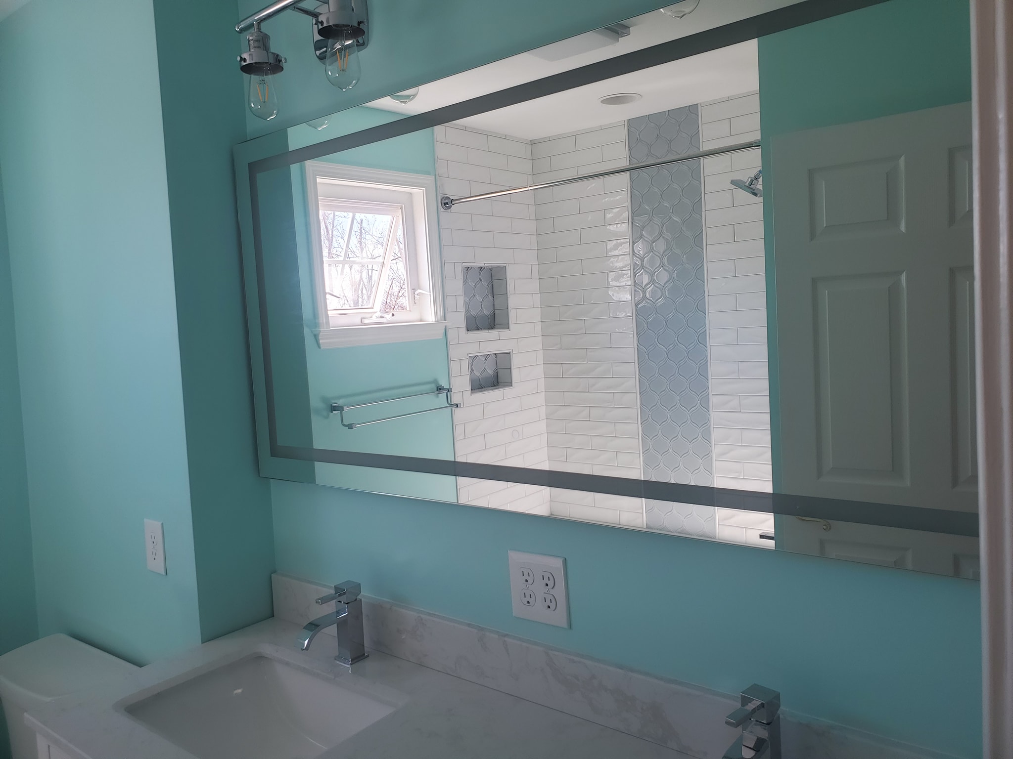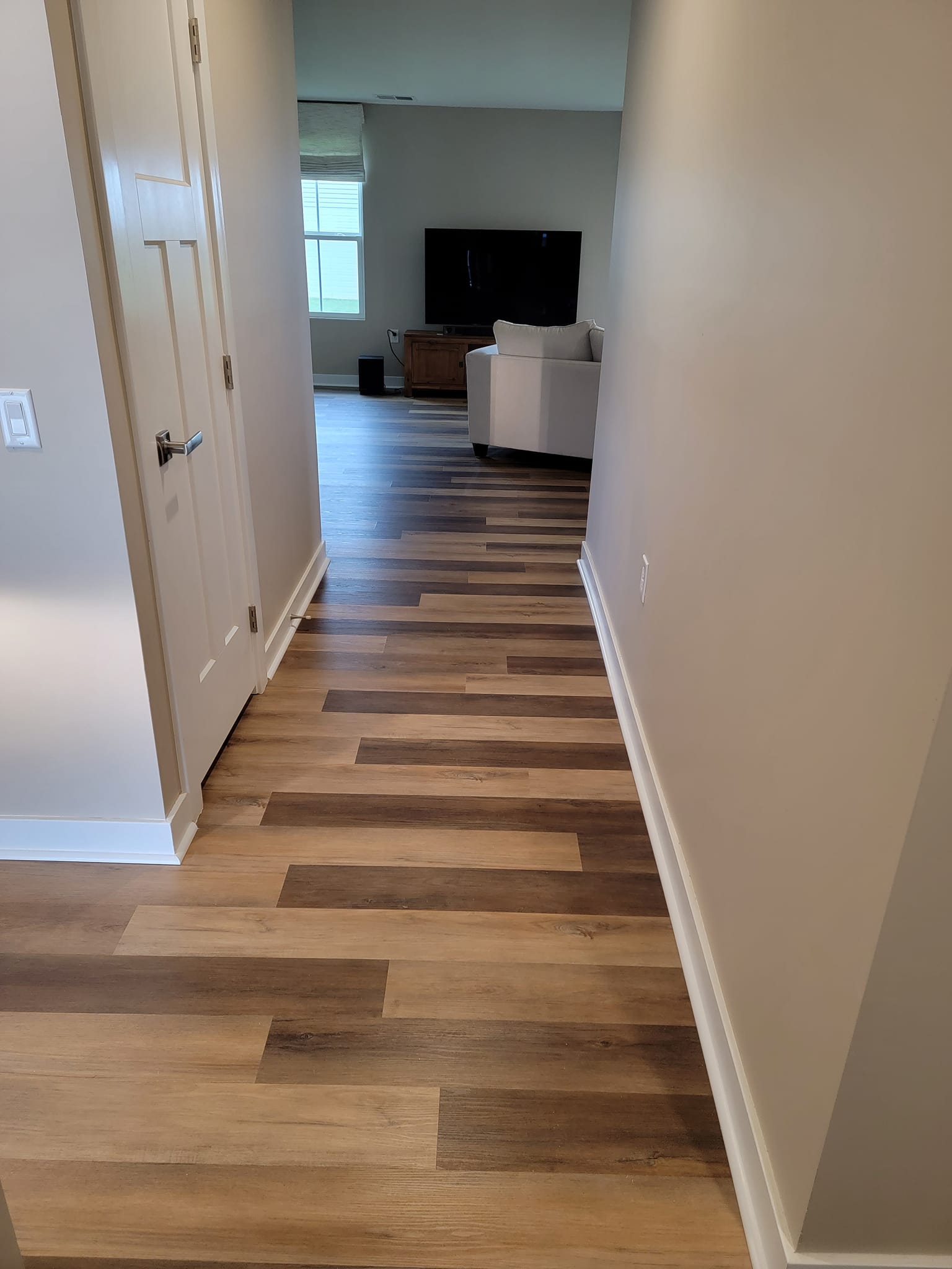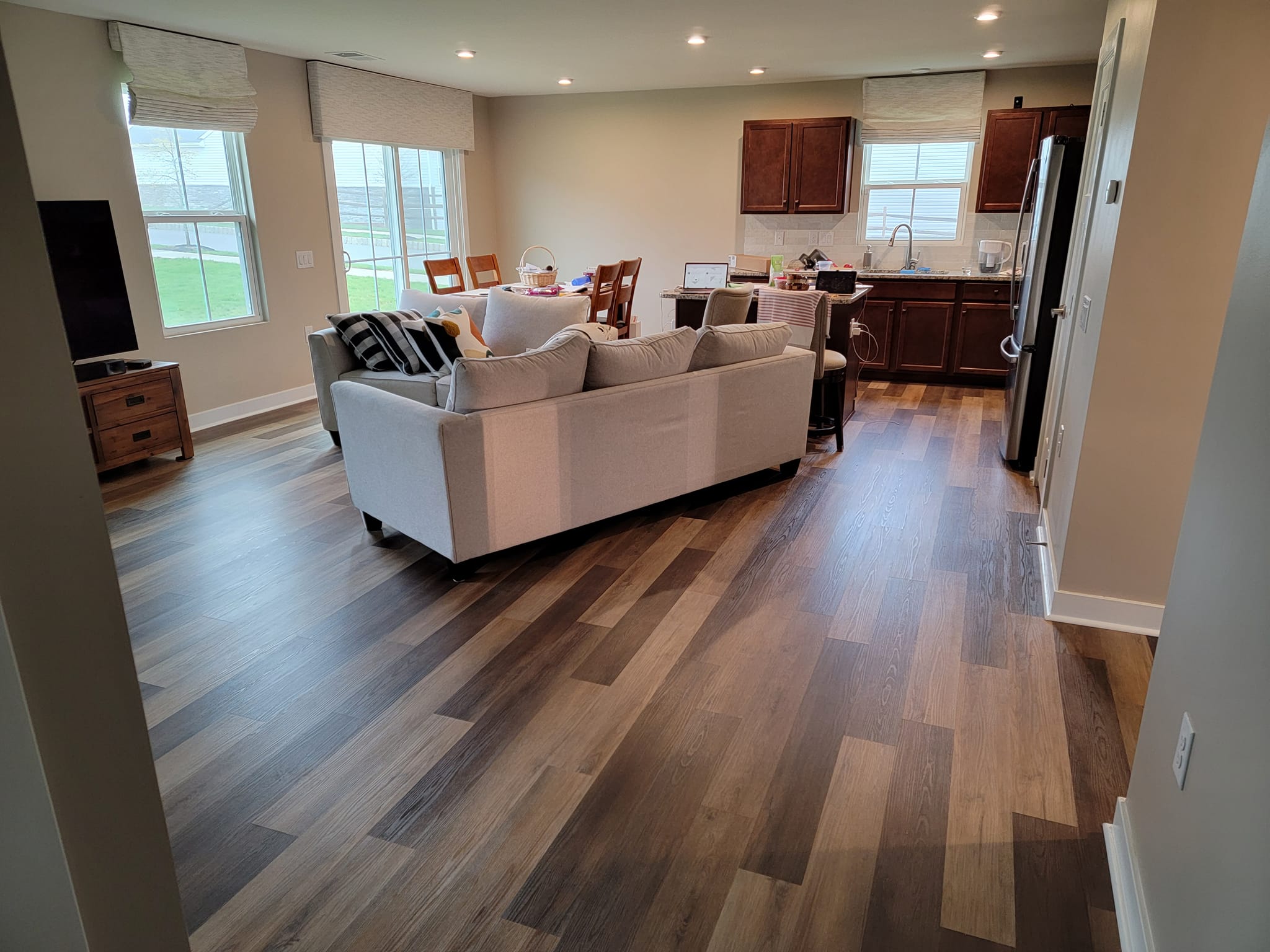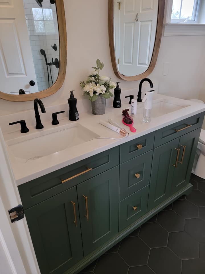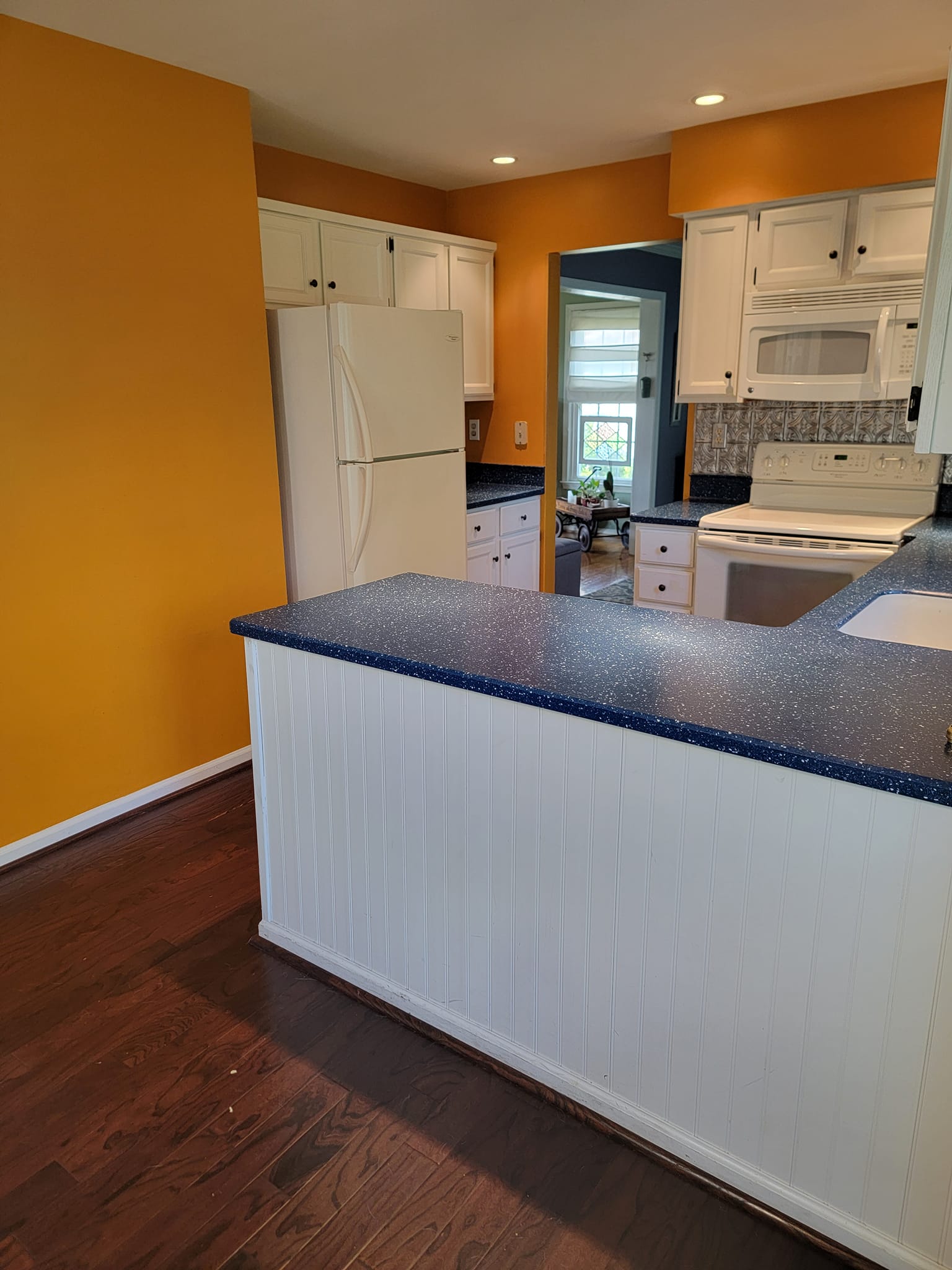 Added a pantry. Removed a closet. New hardwood in the kitchen to match existing wood. Whole first floor hardwood was sanded and finished. We added a plash of color in the family room as well as relocated 4 new recessed lights and tile around the fire place. All and all Ms Kelley’s home is absolutely stunning!!