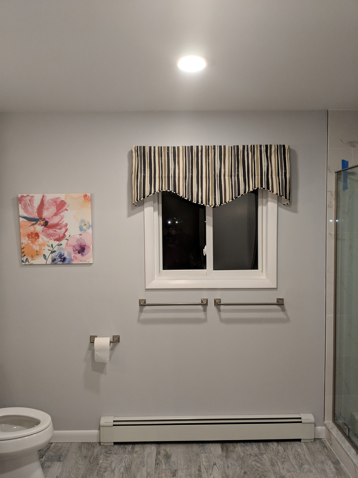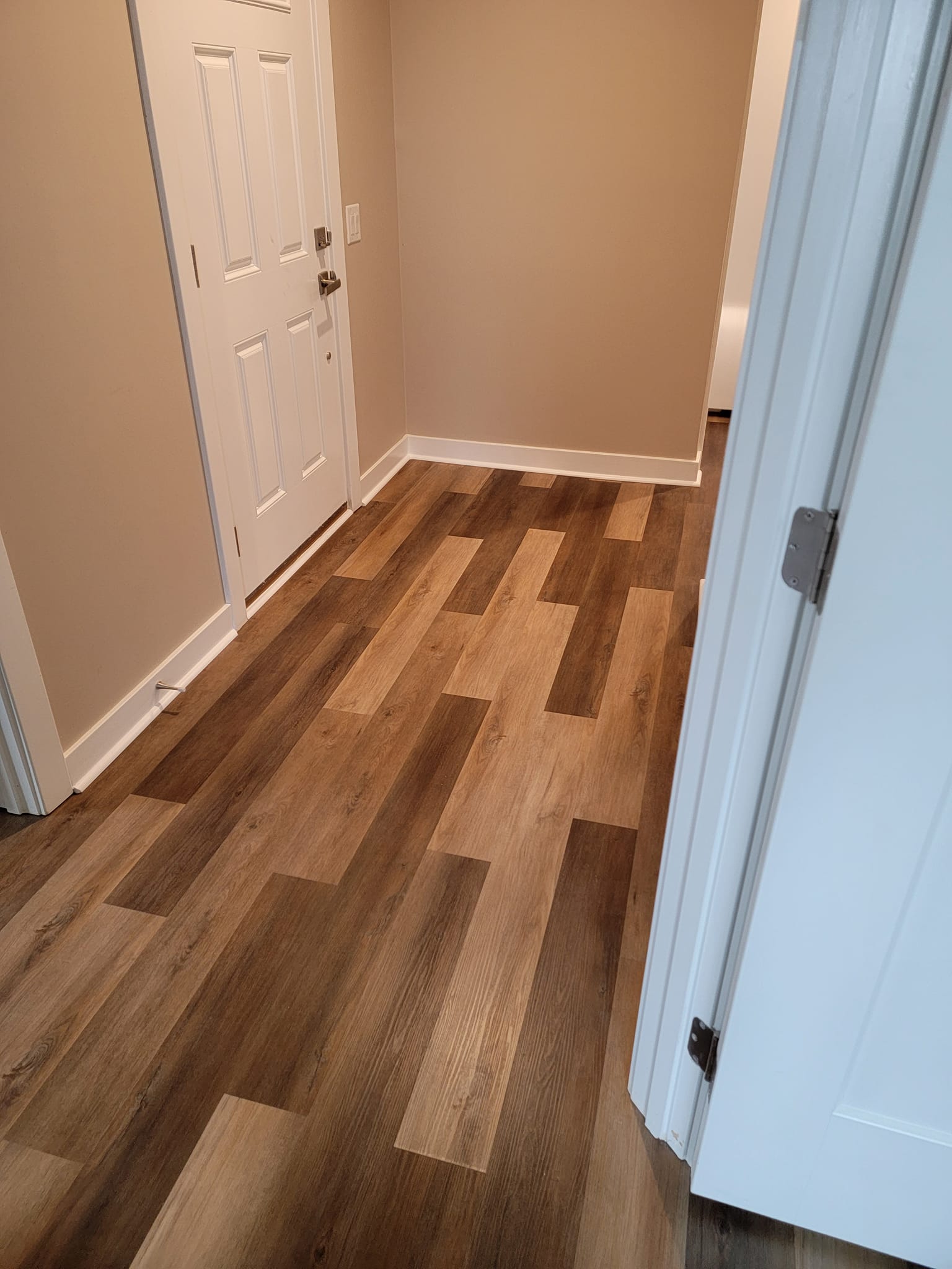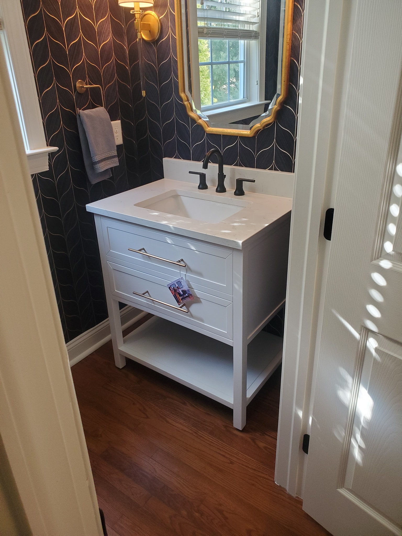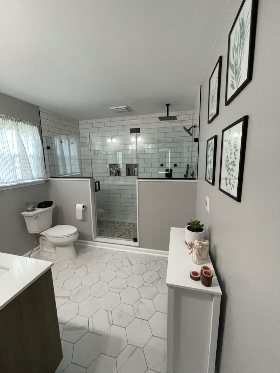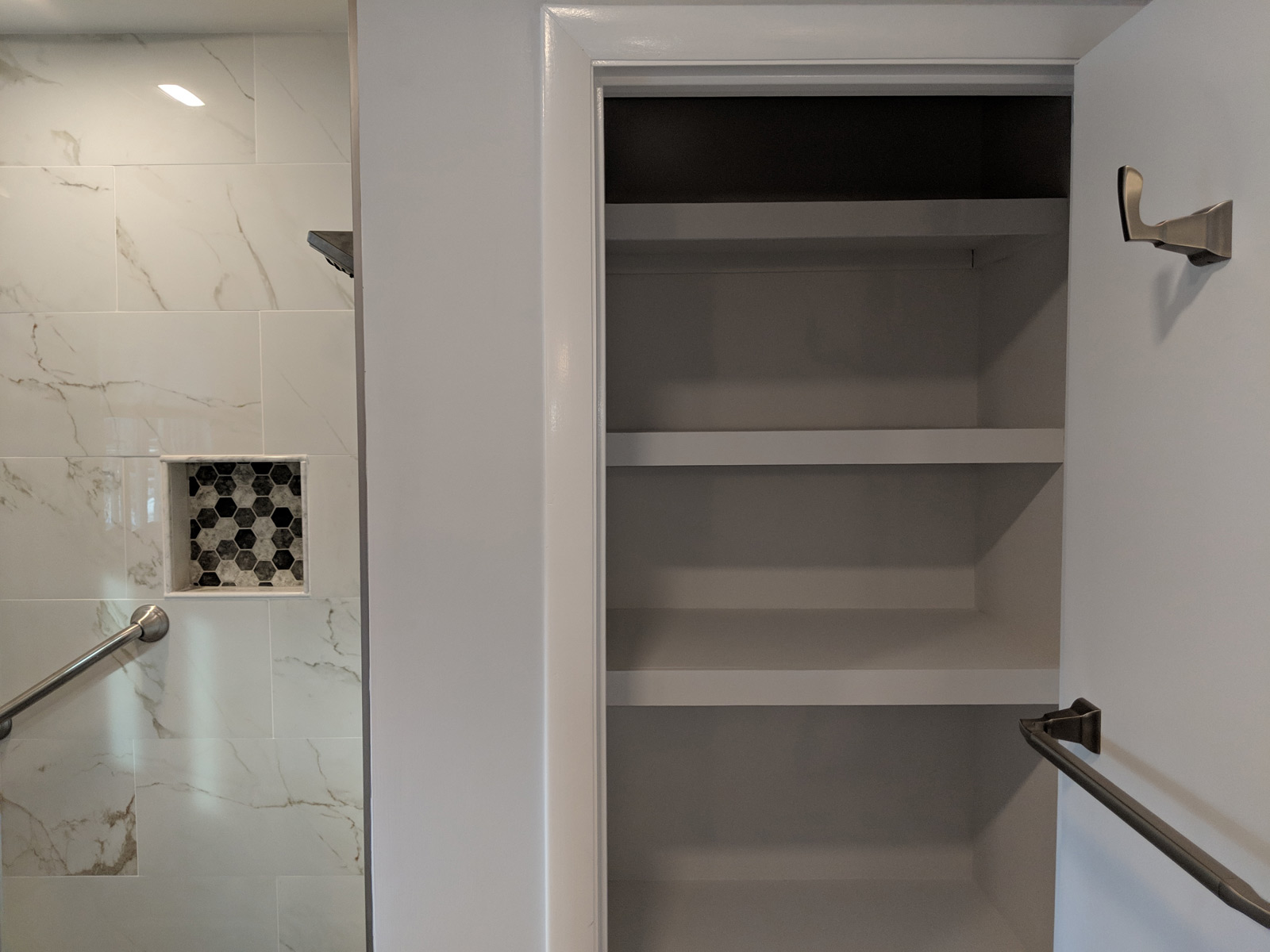 Added a pantry. Removed a closet. New hardwood in the kitchen to match existing wood. Whole first floor hardwood was sanded and finished. We added a plash of color in the family room as well as relocated 4 new recessed lights and tile around the fire place. All and all Ms Kelley’s home is absolutely stunning!!