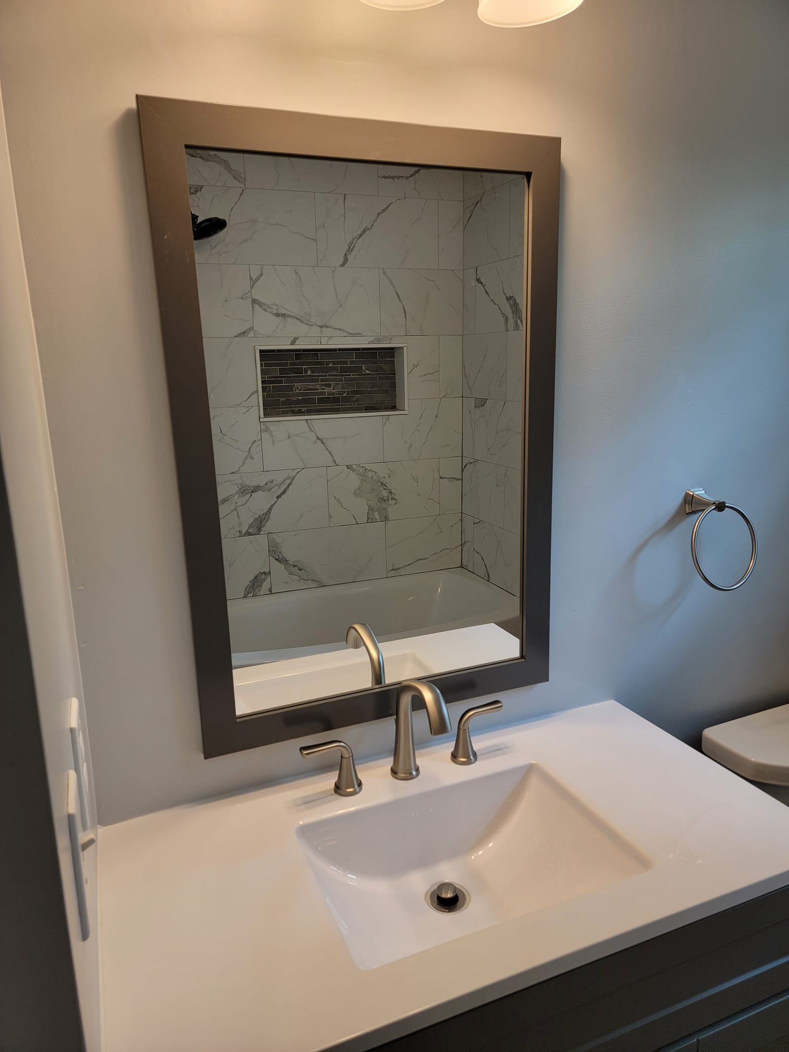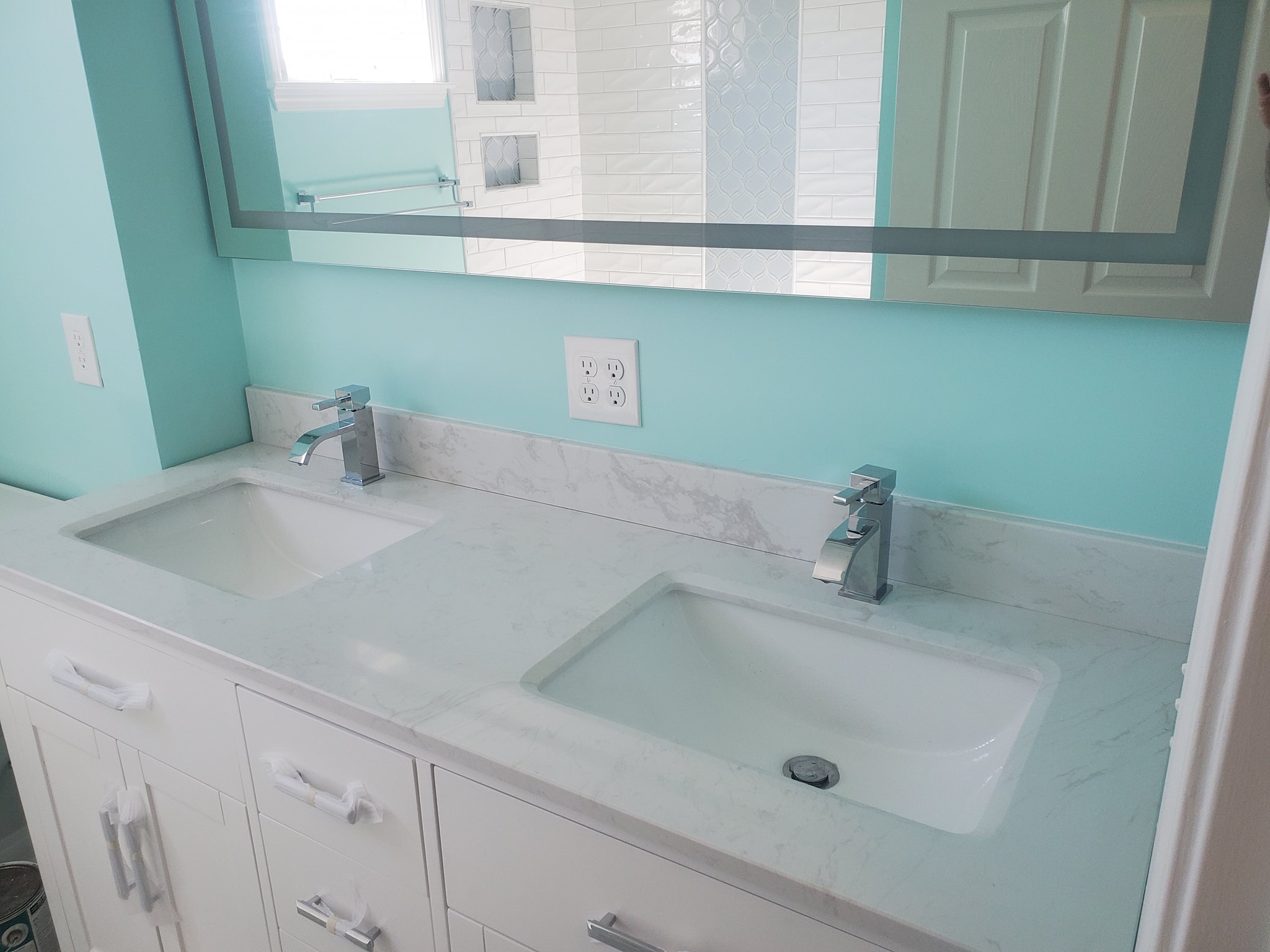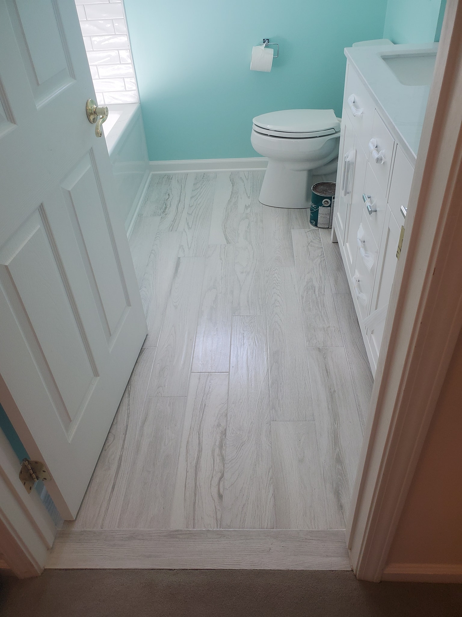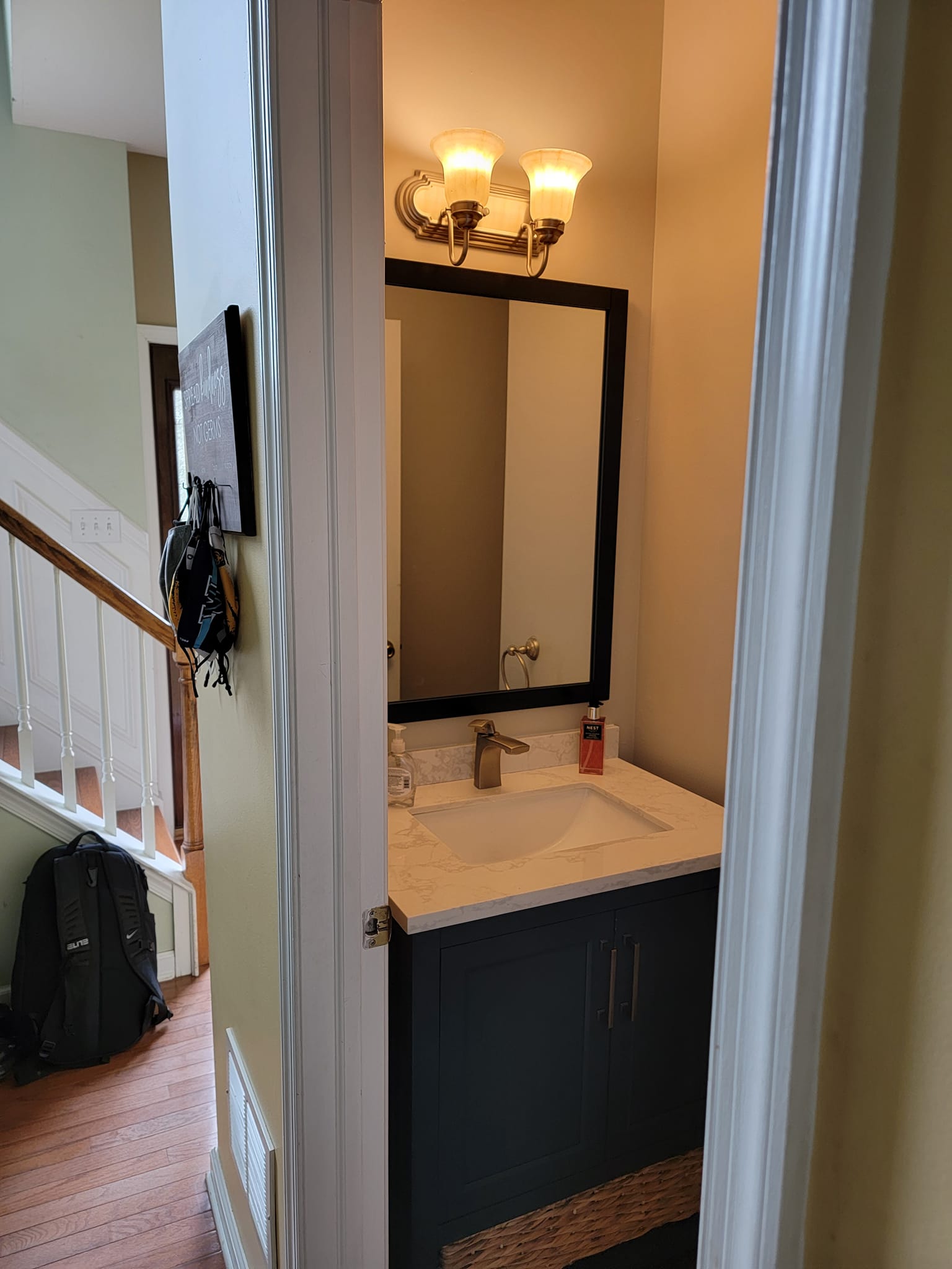 Added a pantry. Removed a closet. New hardwood in the kitchen to match existing wood. Whole first floor hardwood was sanded and finished. We added a plash of color in the family room as well as relocated 4 new recessed lights and tile around the fire place. All and all Ms Kelley’s home is absolutely stunning!!