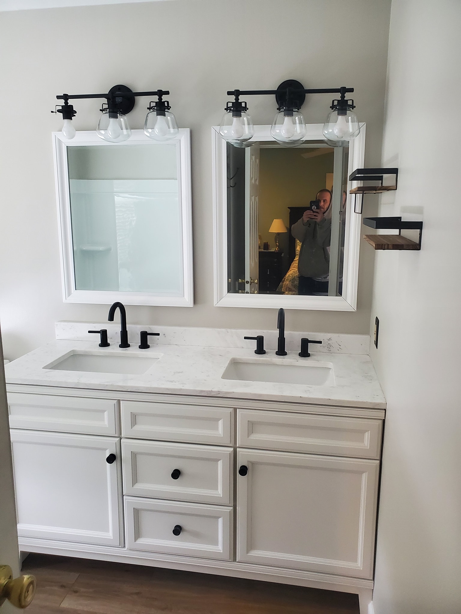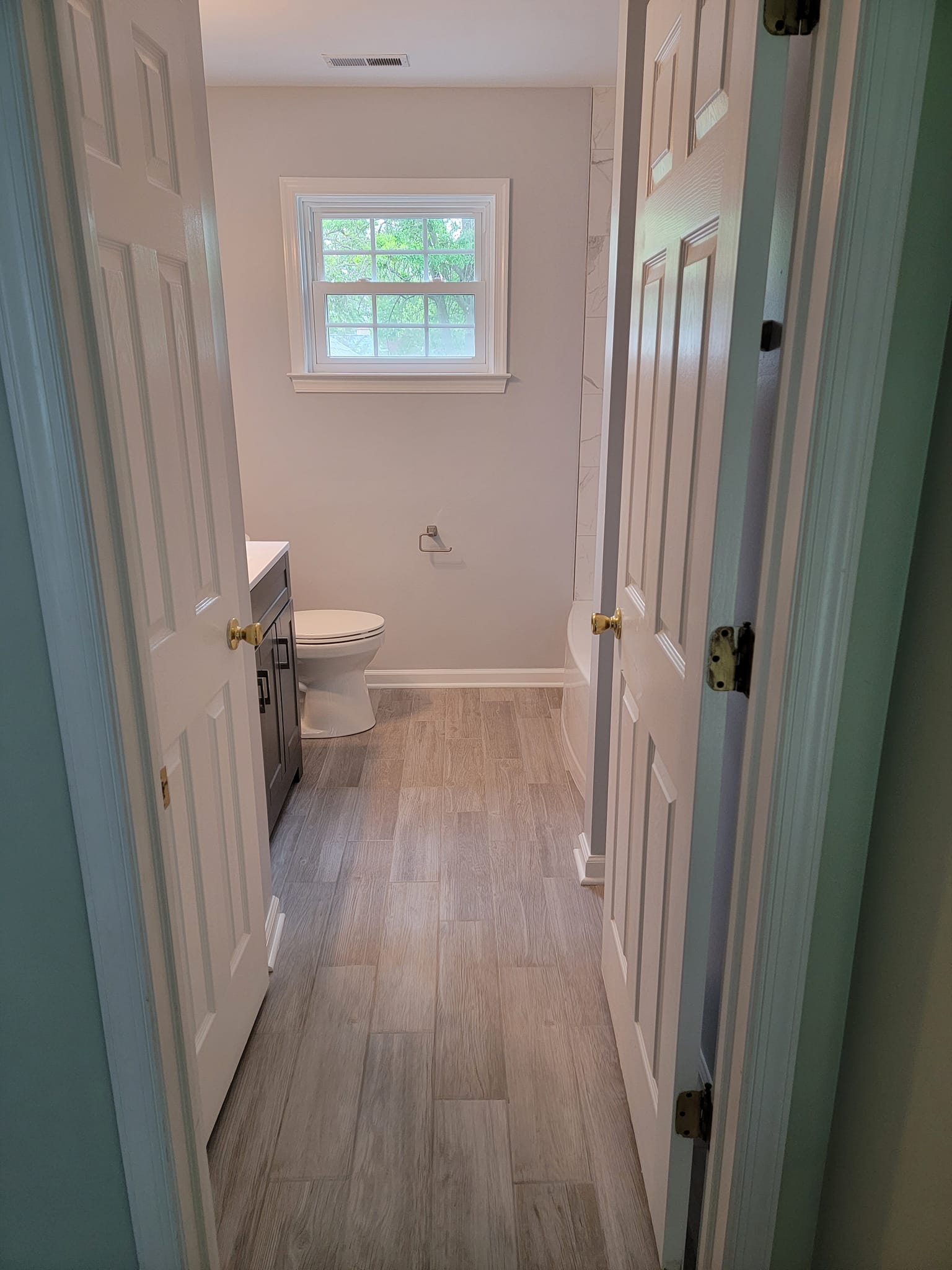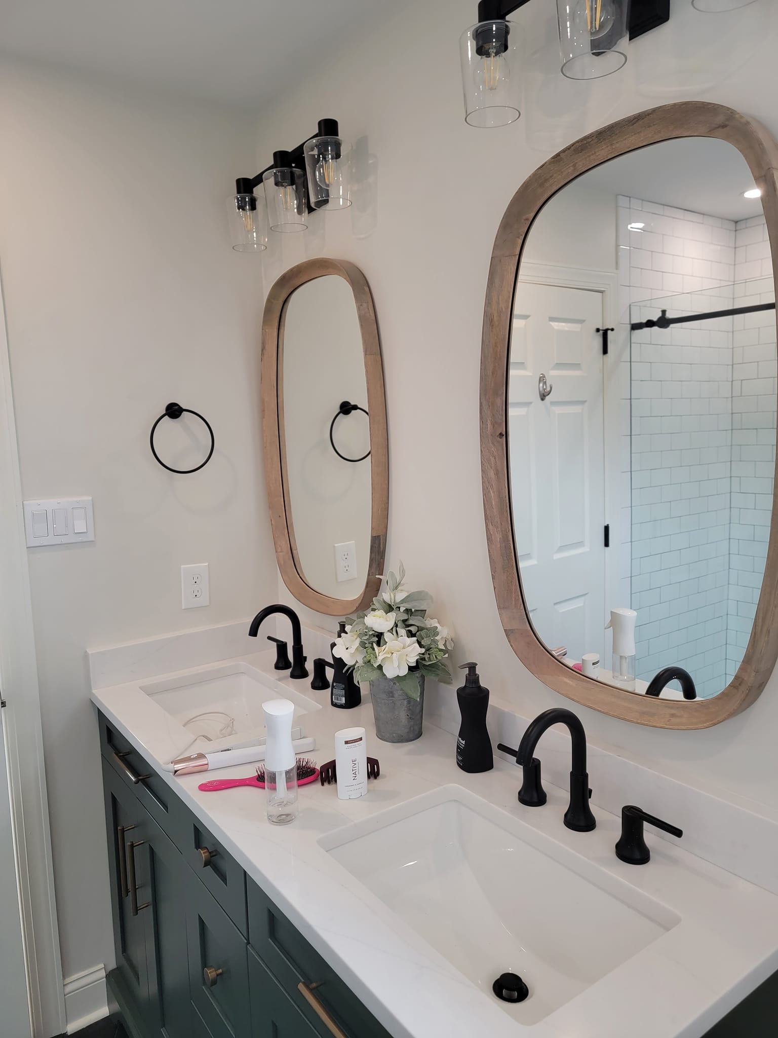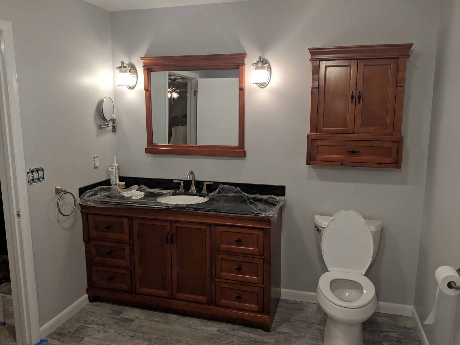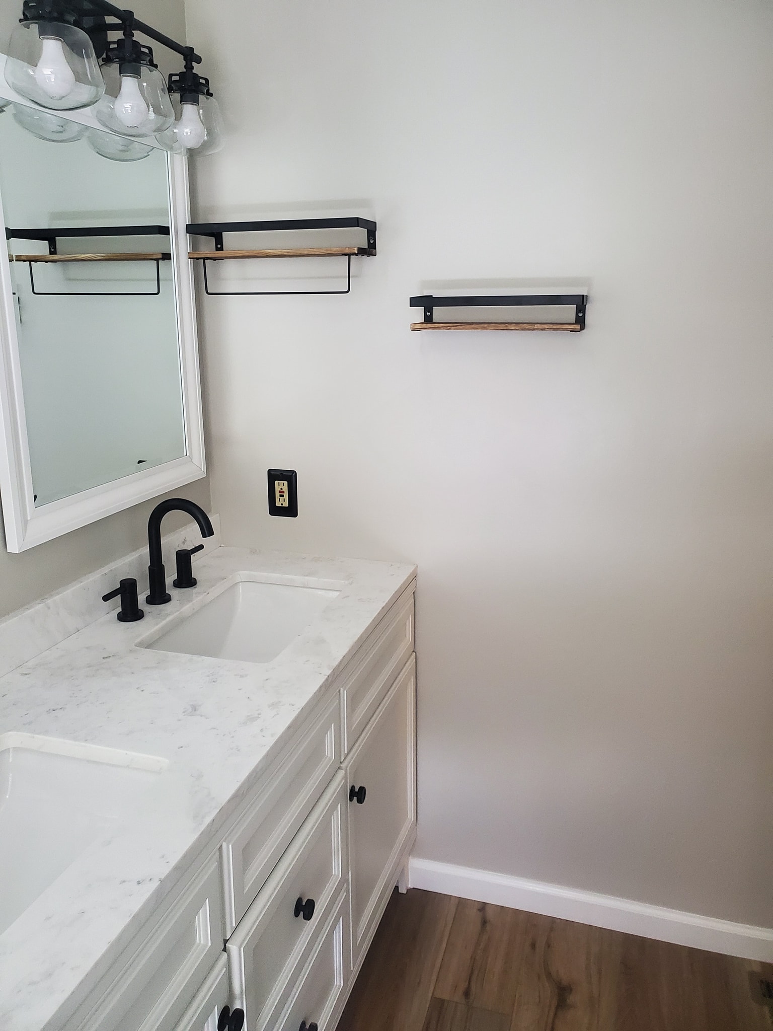 Added a pantry. Removed a closet. New hardwood in the kitchen to match existing wood. Whole first floor hardwood was sanded and finished. We added a plash of color in the family room as well as relocated 4 new recessed lights and tile around the fire place. All and all Ms Kelley’s home is absolutely stunning!!