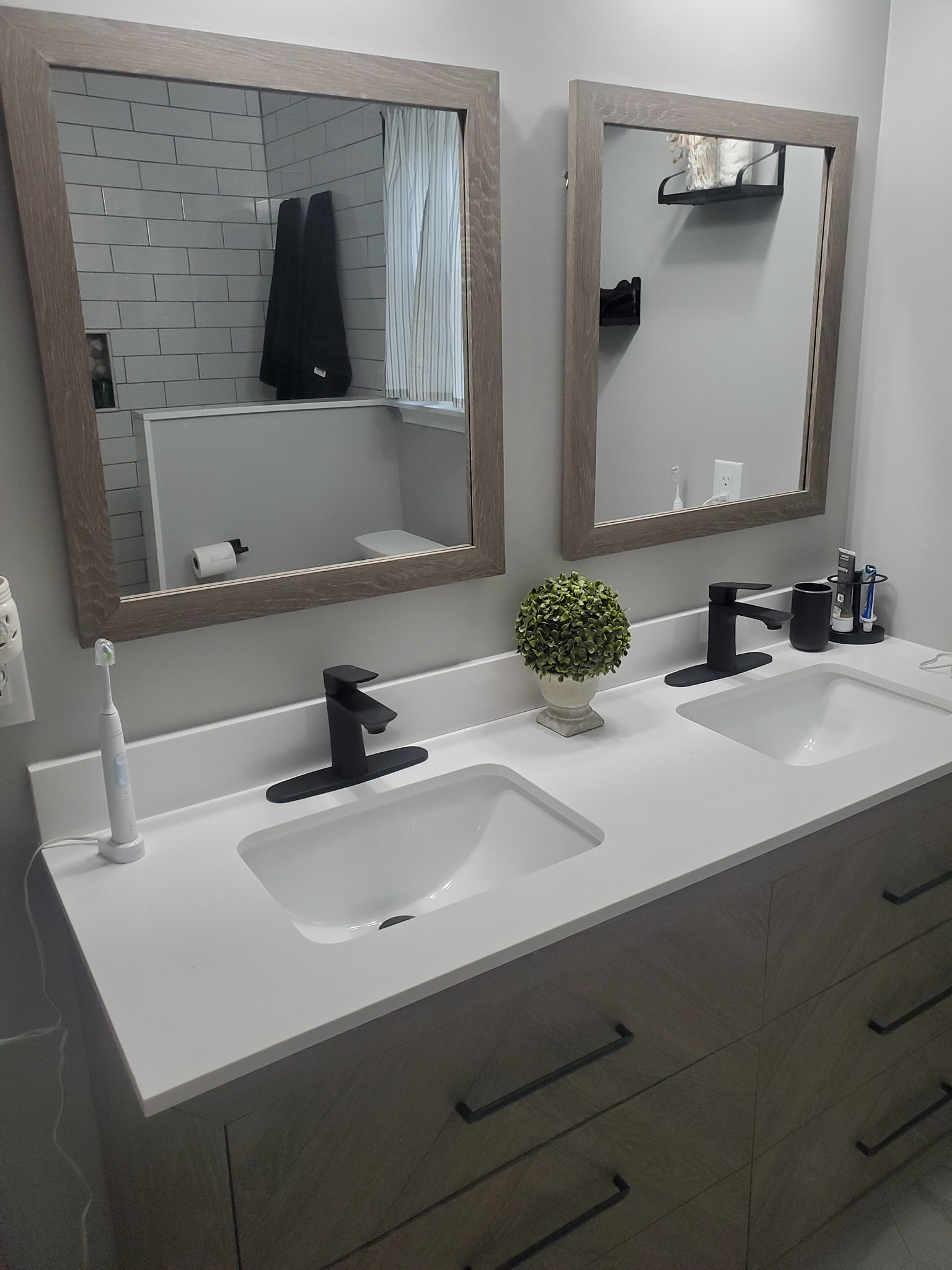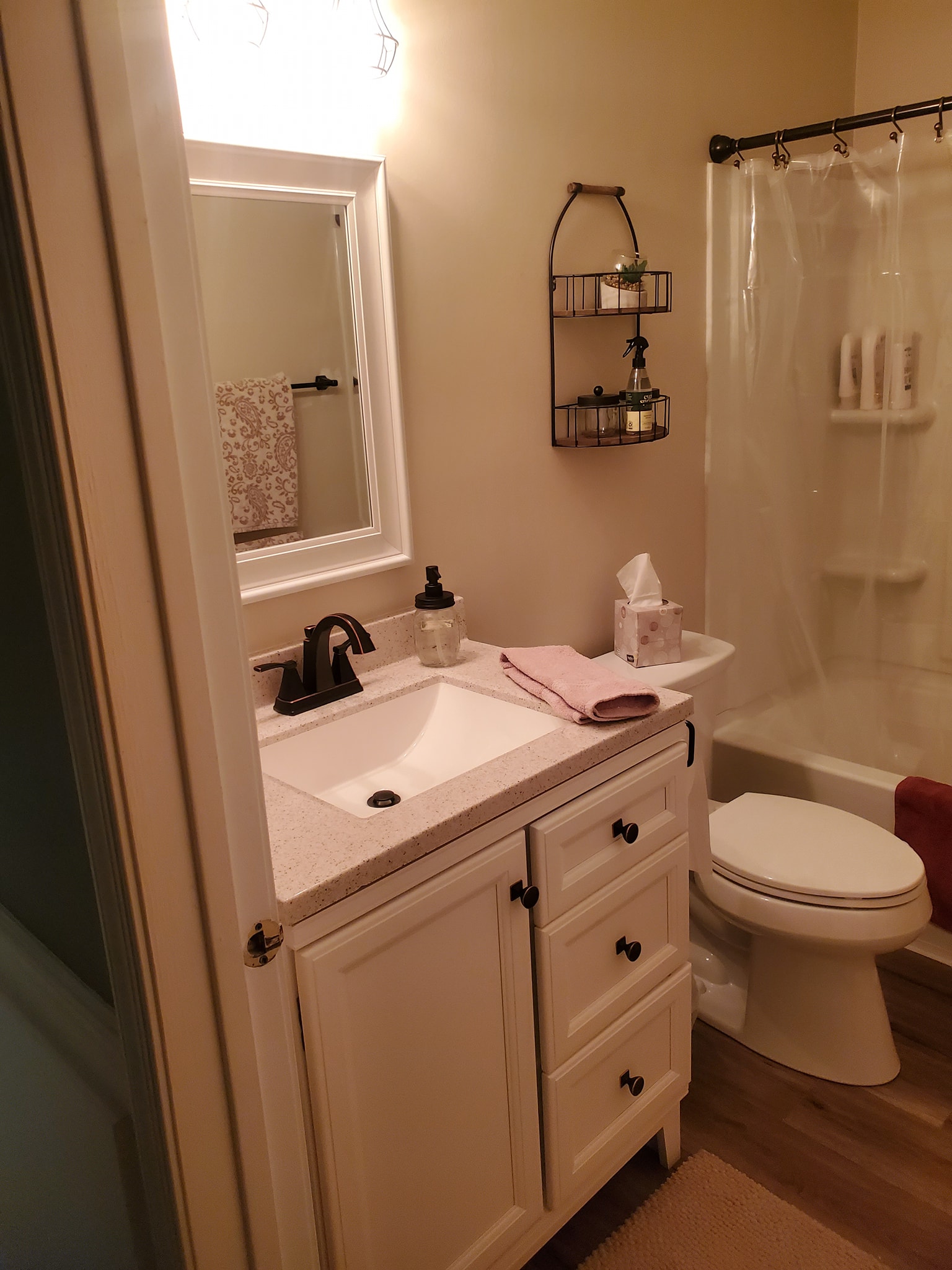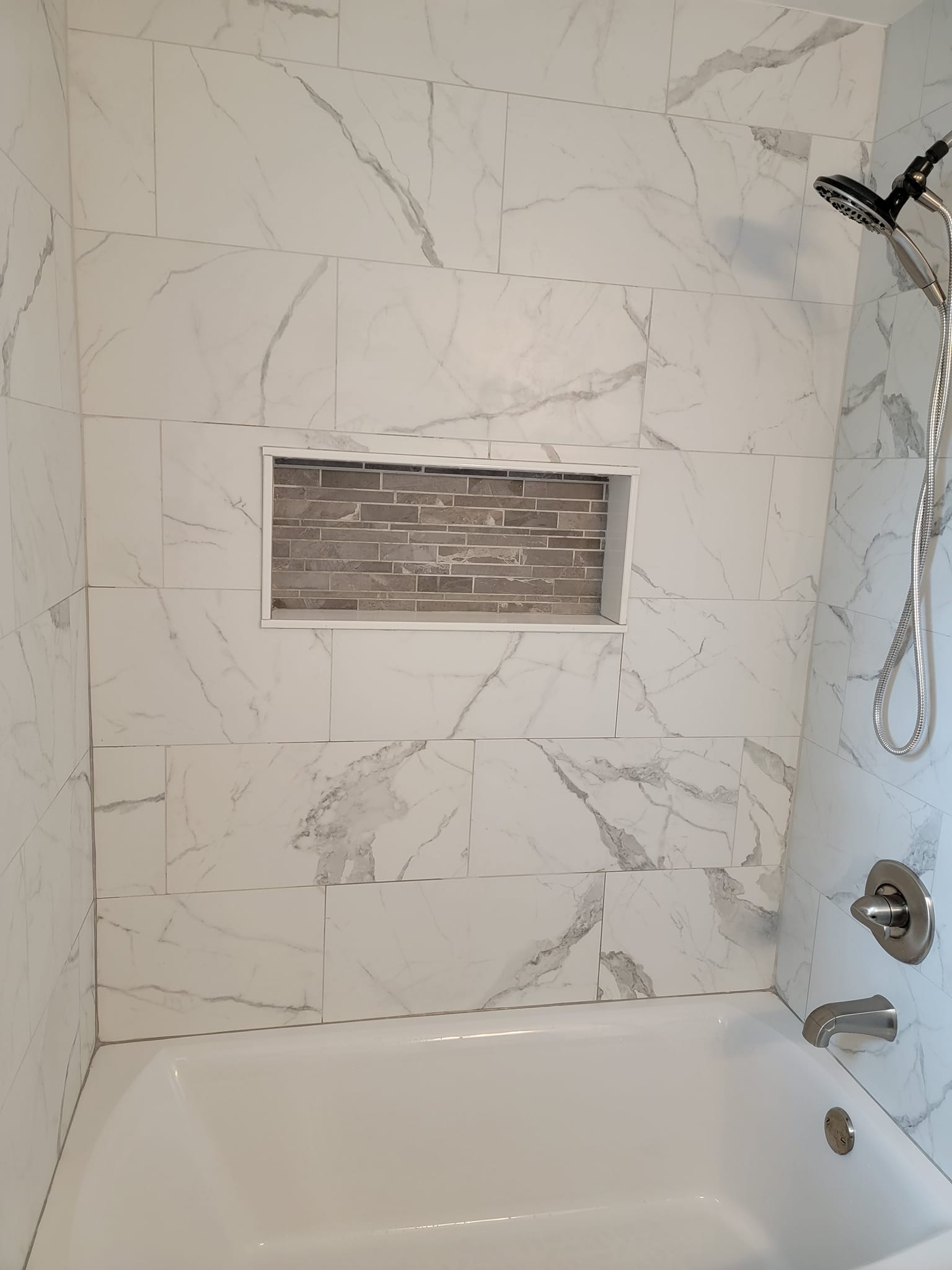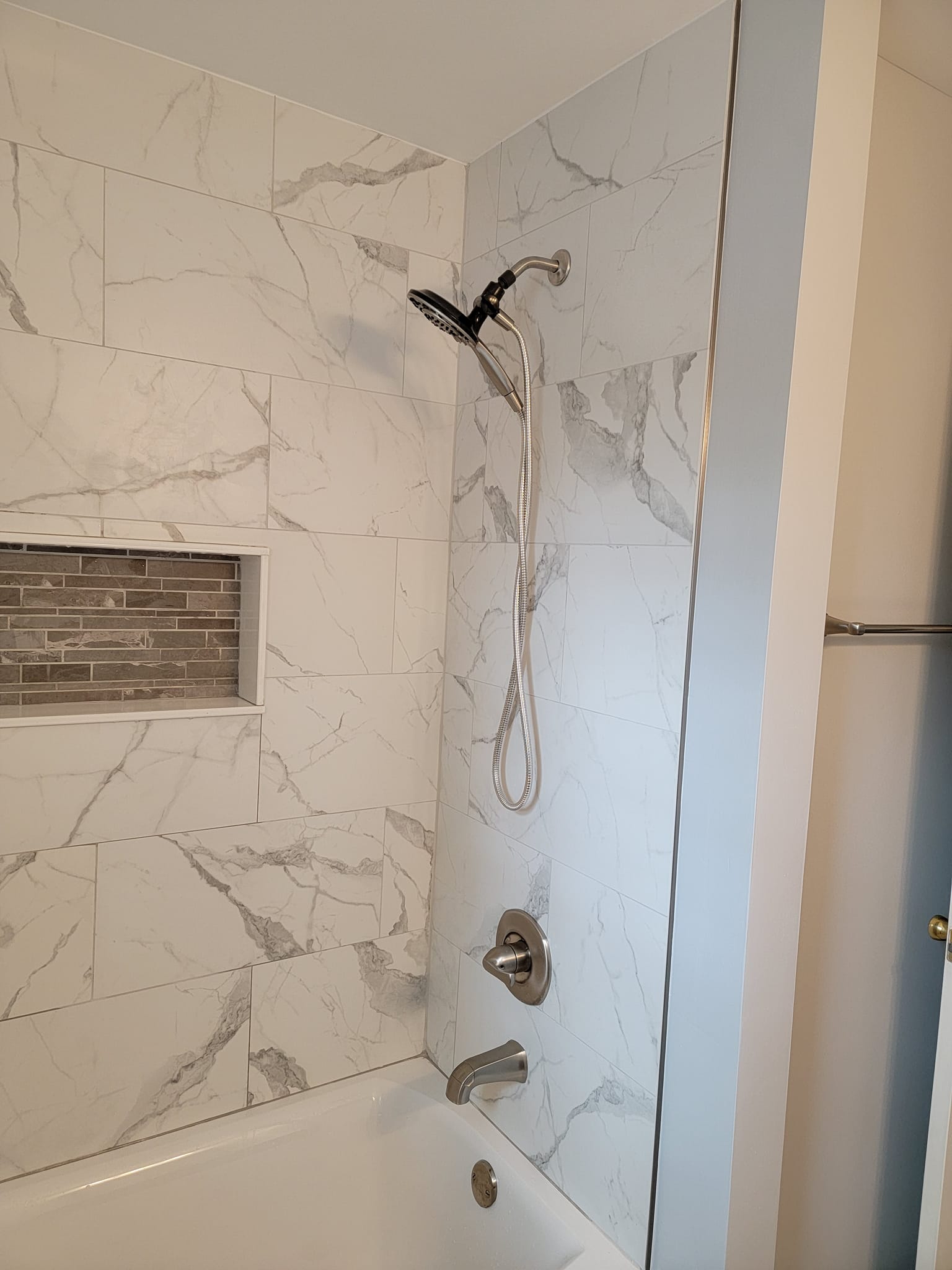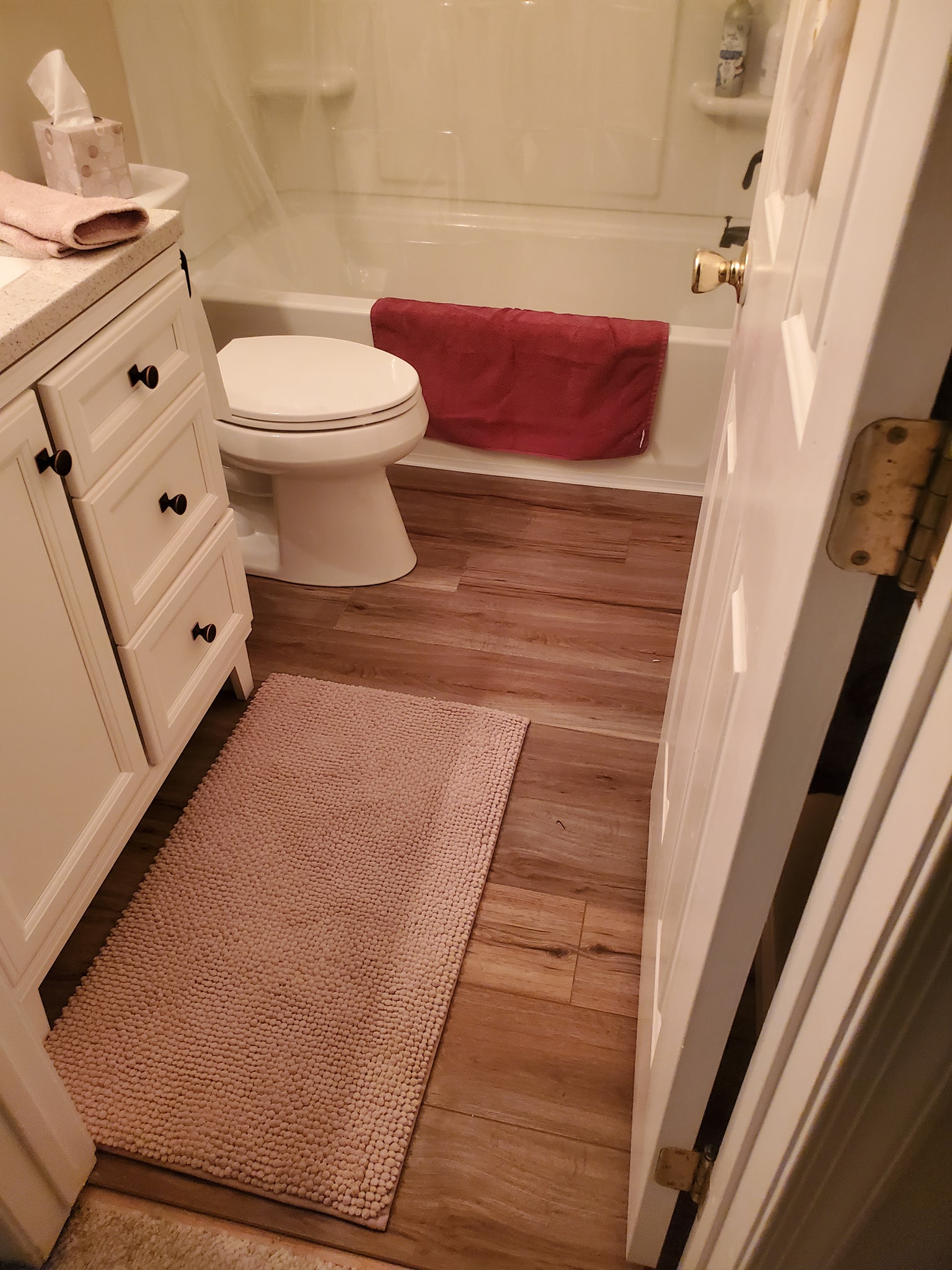 Added a pantry. Removed a closet. New hardwood in the kitchen to match existing wood. Whole first floor hardwood was sanded and finished. We added a plash of color in the family room as well as relocated 4 new recessed lights and tile around the fire place. All and all Ms Kelley’s home is absolutely stunning!!