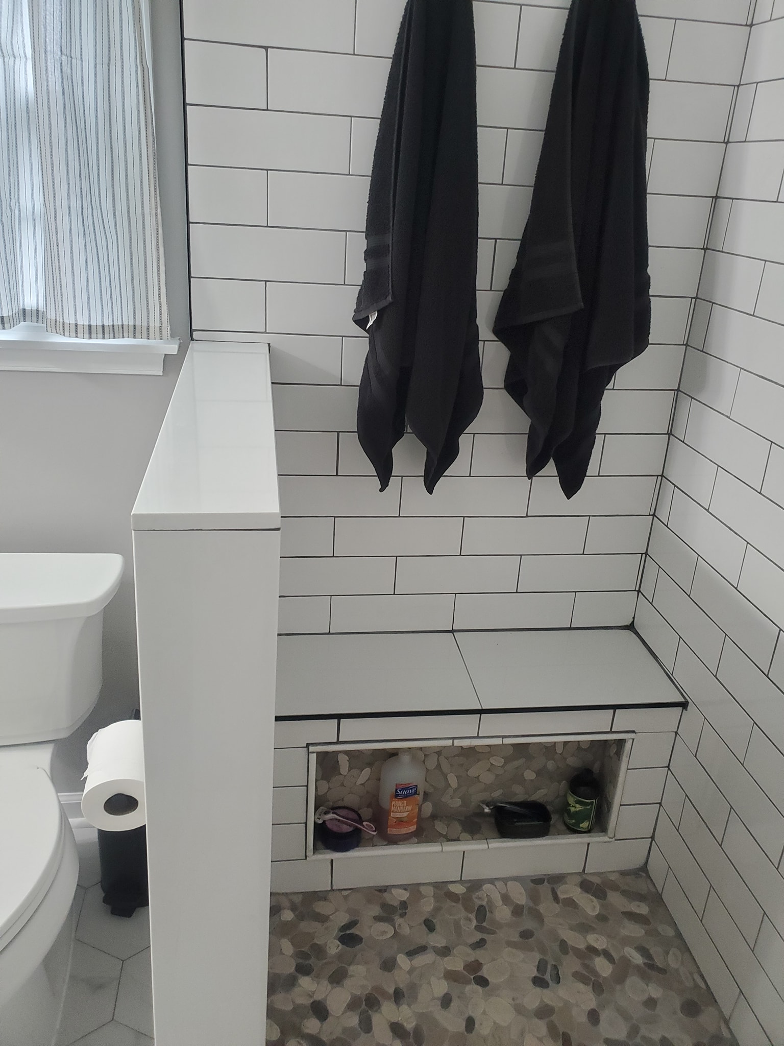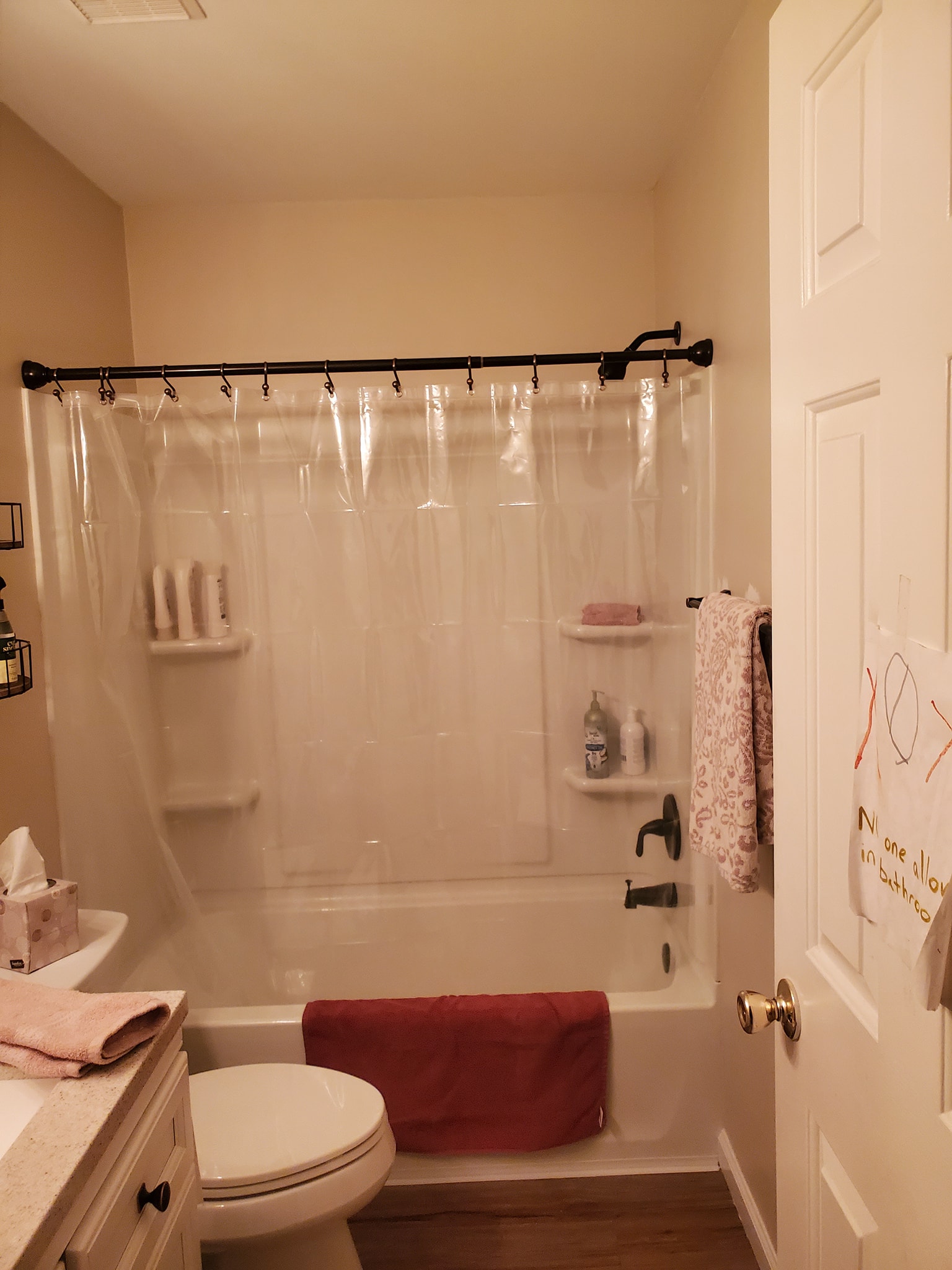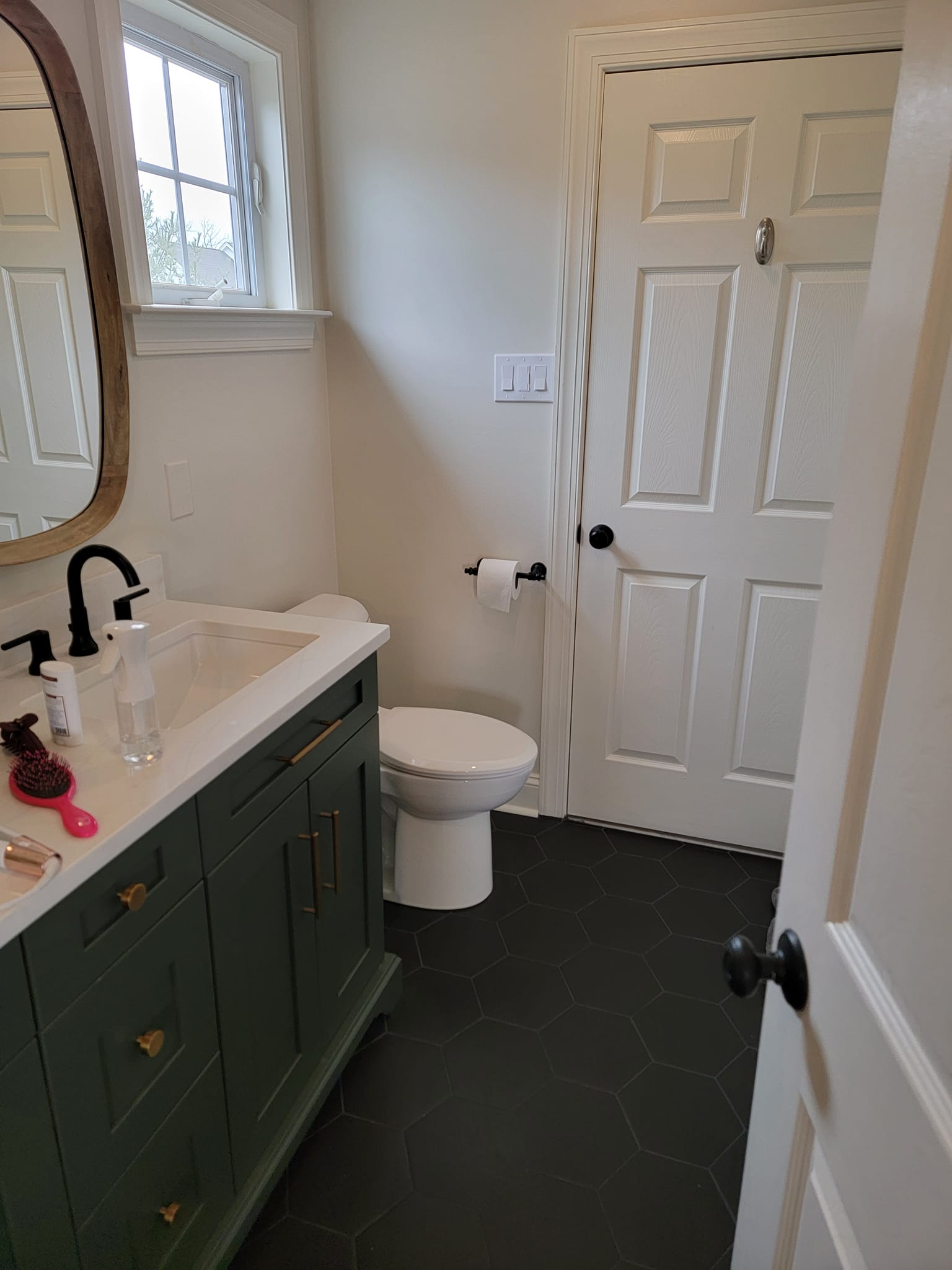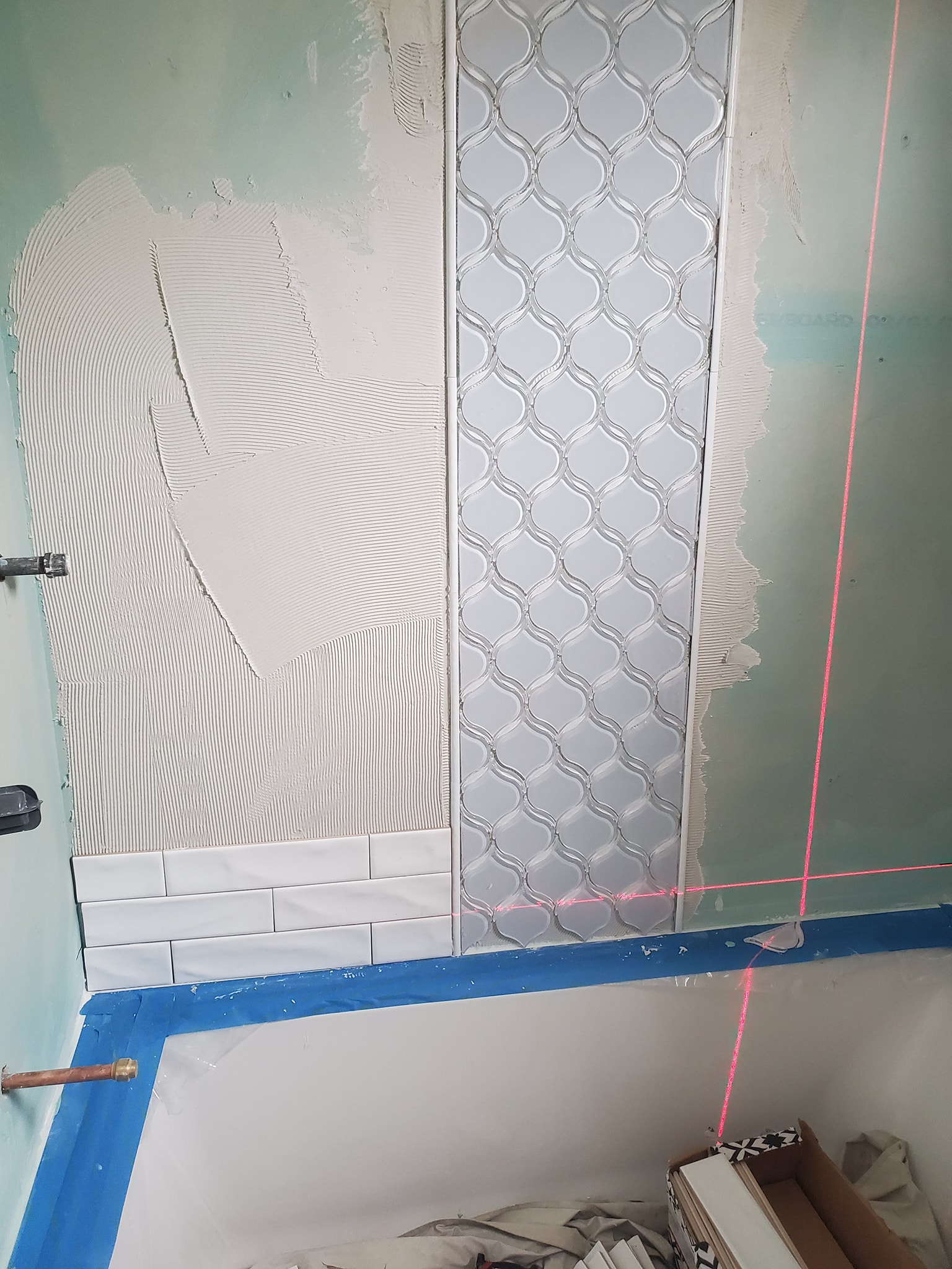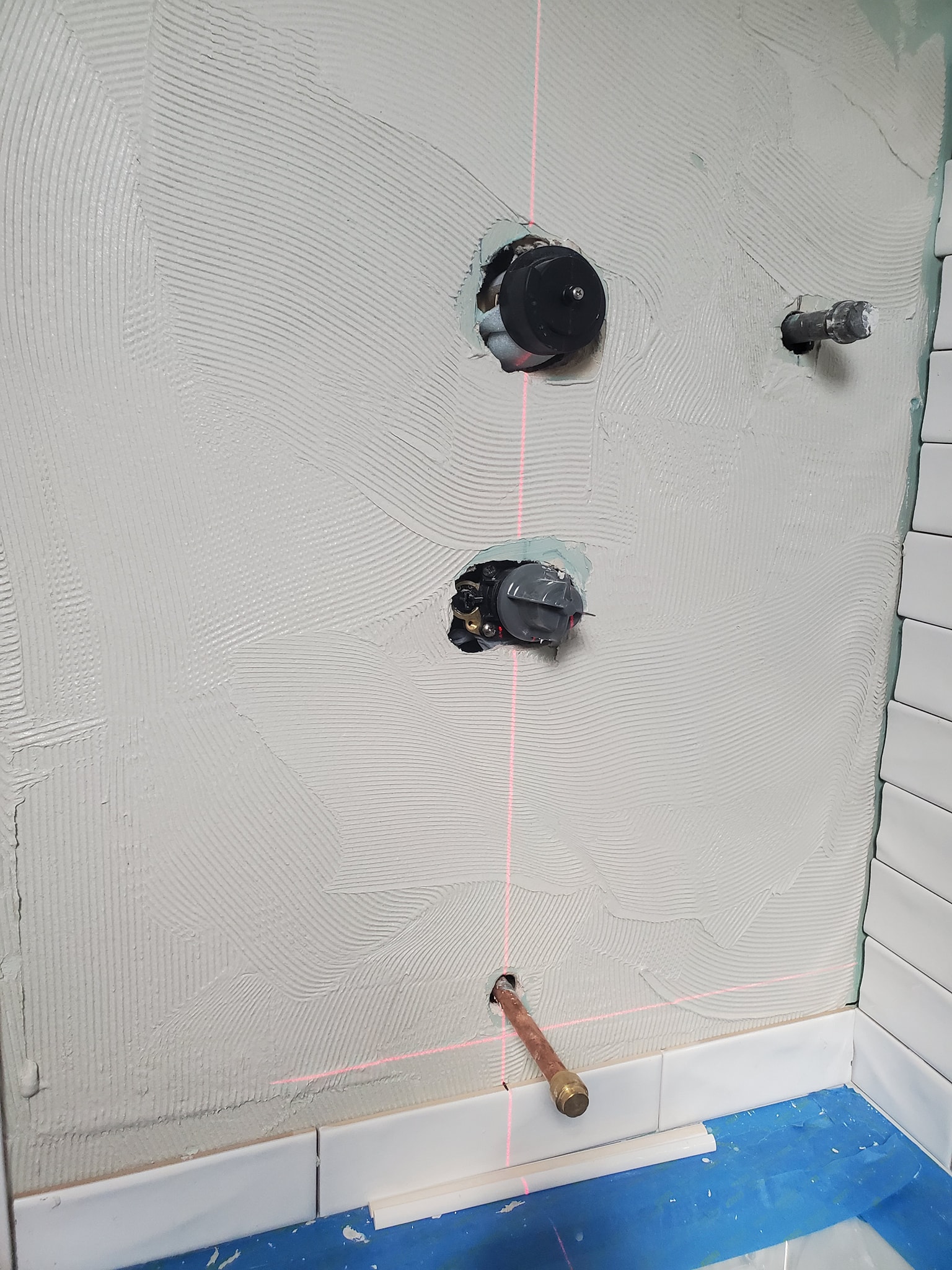 We relocated the 3 inch drain line into the floor joist.